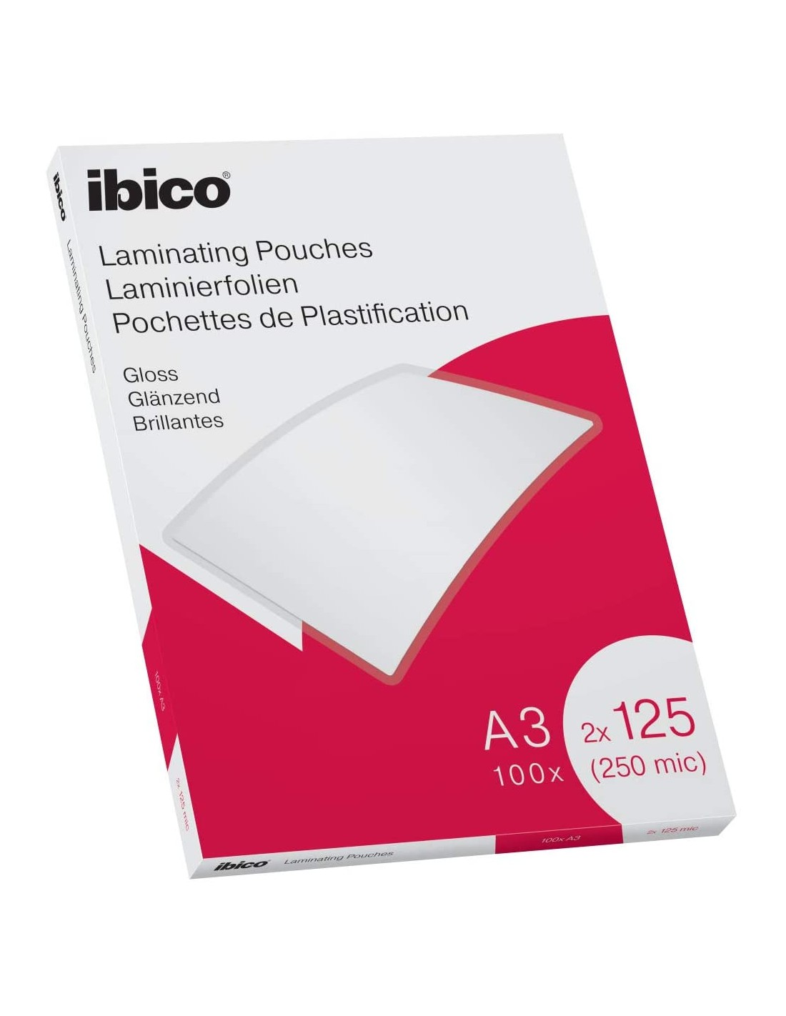 Ibico Basics Confezione da 100 Buste per Plastificazione a Caldo, con Finitura Lucida, in Formato A3, Spessore di 2 x 125 Micron, 303 mm x 426 mm x 3 mm,...