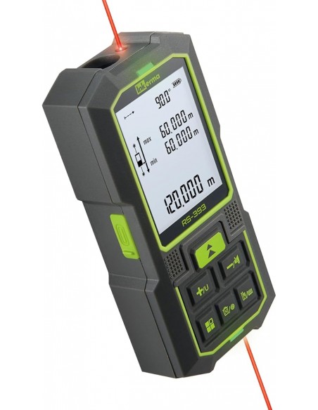 - Modalità di misurazione multiple: Il distanziometro laser offre una varietà di modalità di misurazione, tra cui la misurazione continua, il calcolo dell'area e del volume, il teorema di Pitagora per l'altezza/larghezza indiretta e la misurazione degli angoli. È possibile passare facilmente dalla modalità bilaterale a quella a laser singolo, per soddisfare le esigenze di semplici misure di lunghezza e di complessi calcoli di volume