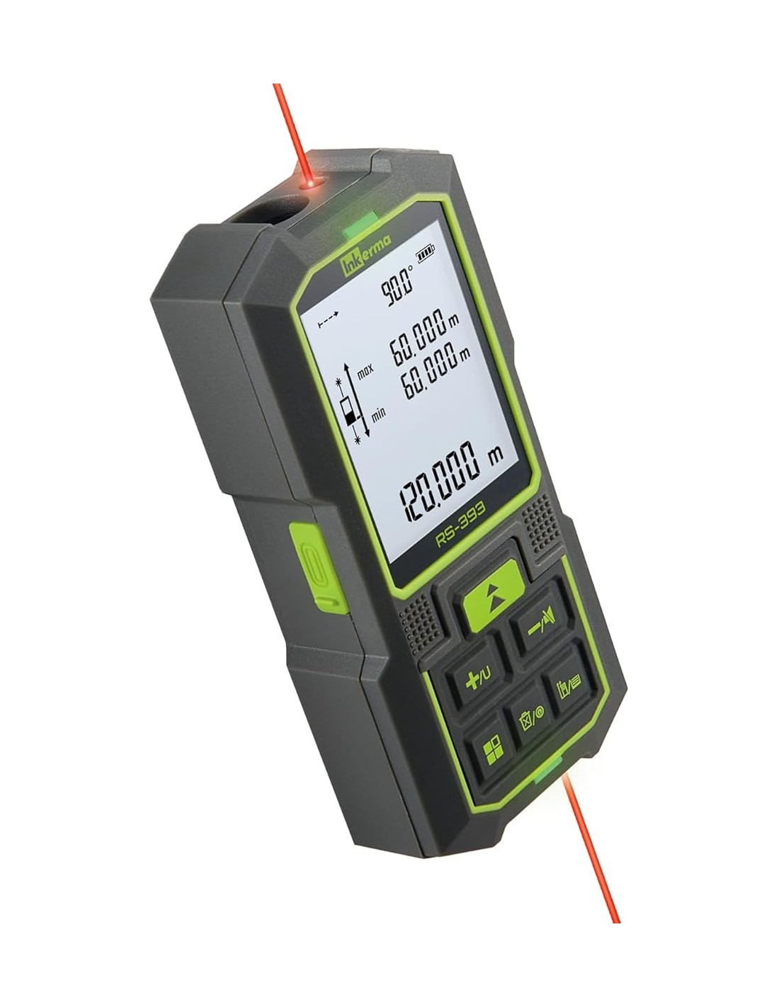 - Misurazione doppia ad alta efficienza: Lo strumento di misura laser doppio di Inkerma aumenta notevolmente l'efficienza del lavoro grazie alla misurazione simultanea in due direzioni. È possibile eseguire più misure da un'unica postazione, risparmiando tempo e riducendo la necessità di spostarsi frequentemente. Dotato di capacità di misurare gli angoli di inclinazione, consente di misurare facilmente gli angoli in vari orientamenti