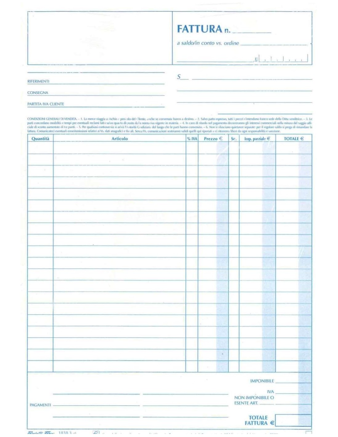 FATTURE 1 ALIQUOTA SNAP OUT N 50PZ TRIPLICE COPIA 3 COPIE AUTORICALCANTI
