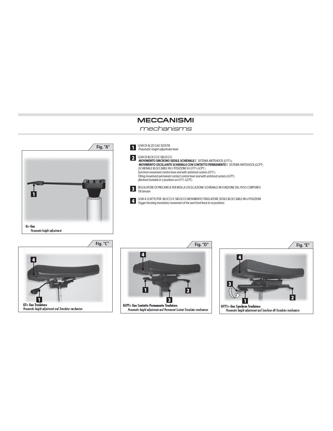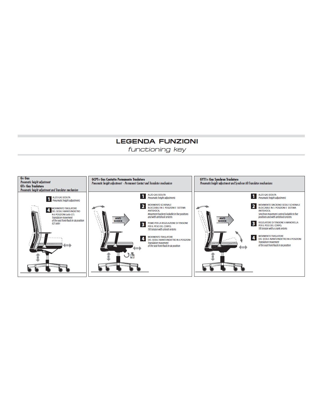 -- il blocco e lo sblocco dell'oscillazione schienale tramite leva con sistema antishock;
