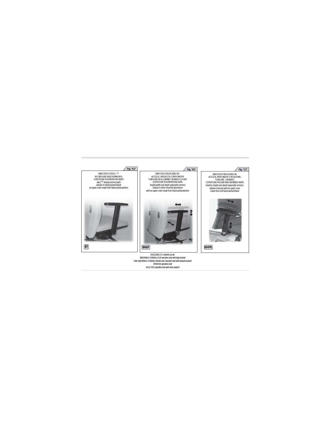- (BF) Bracciolo fi sso in metallo verniciato con copertura superiore in polipropilene nero. (Vedi fi g. A2)