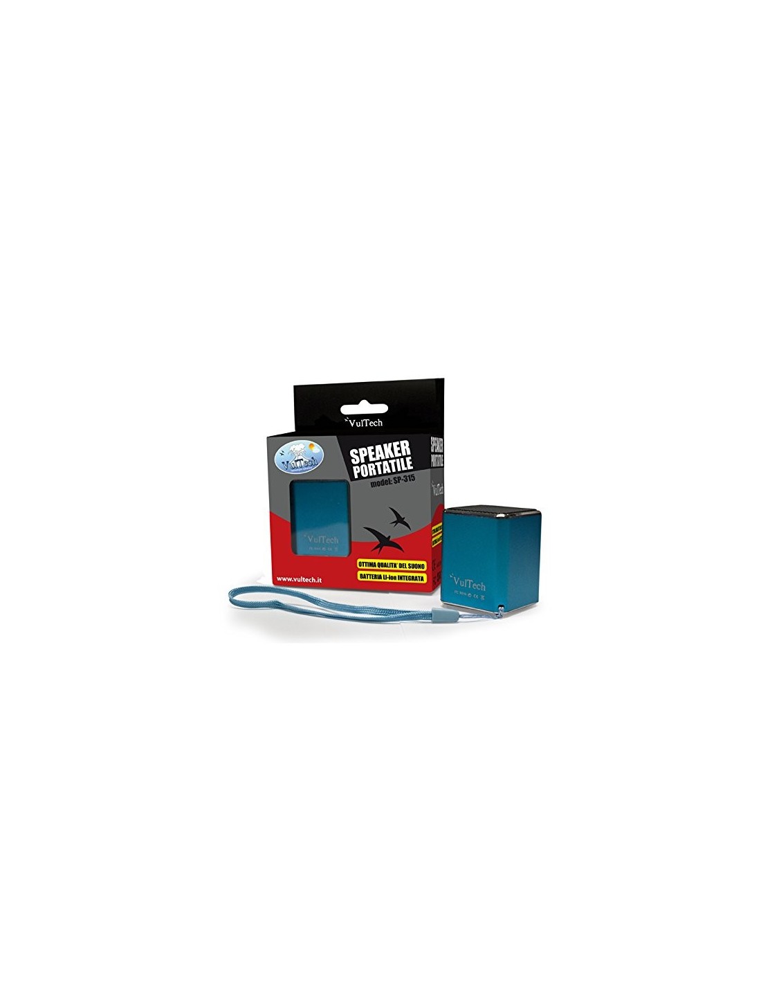 0Mini Cassa Vultech® SP-315 Autoalimentata ingresso Micro Sd - Line In Mini Speaker Portatile Vultech SP-315 Autoalimentata con ingresso micro sd che riproduce fino a 32Gb. Prodotto innovativo e di alta qualità acustica che riproduce audio da micro sd card o con apposito cavo incluso nella confezione jack - jack da 3,5mm stereo, attraverso la Line-in è possibile riprodurre qualunque fonte audio come tablet, smartphones, notebook, netbook, etc. Non necessita di batterie aggiuntive, ma si ricarica tramite cavo usb presente nella confezione. Il prodotto dispone di una batteria a litio che in carica massima ha una durata di oltre 3 ore.