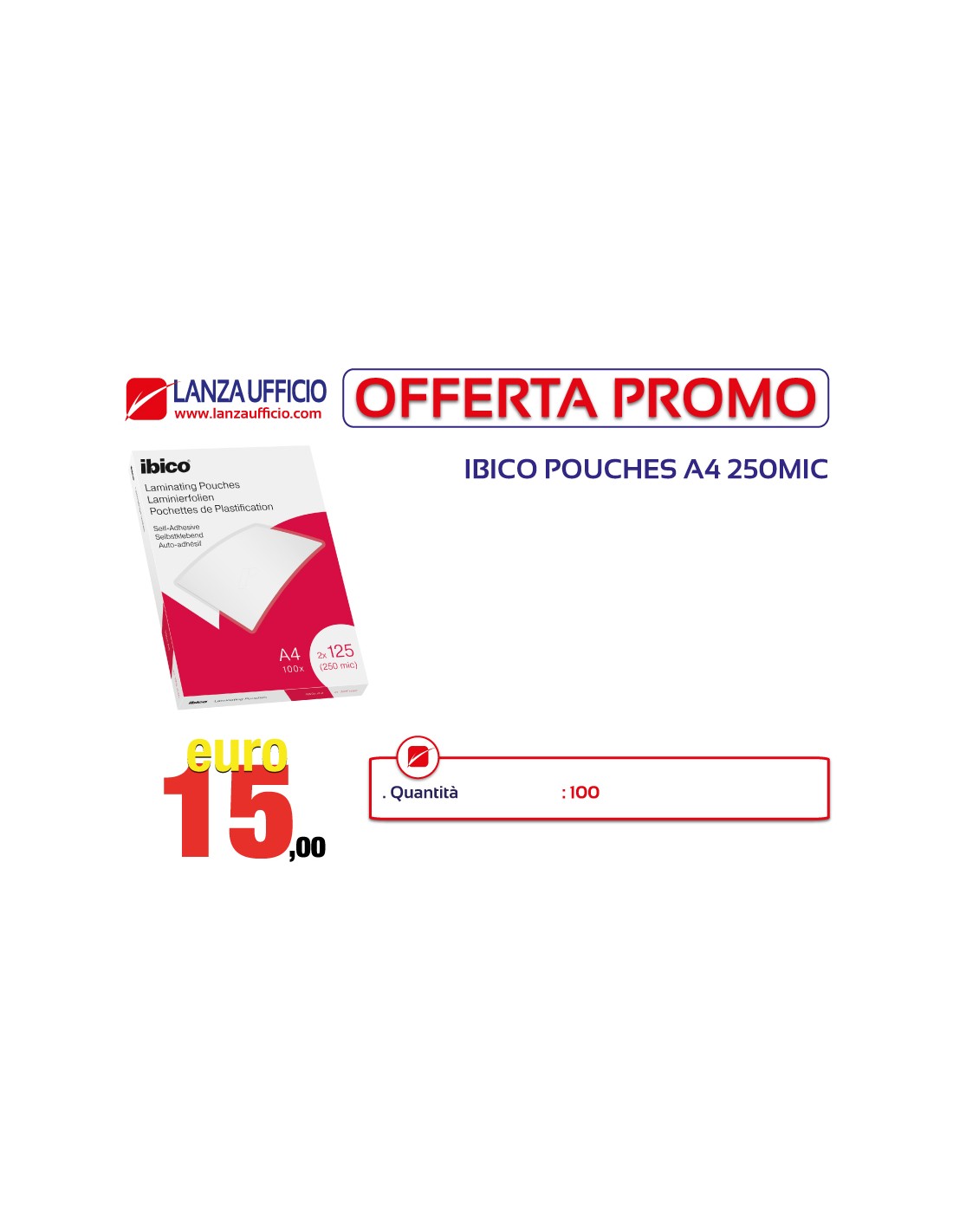 POUCHES IBICO A4 250 MICRON CONFEZIONE 100 PEZZI