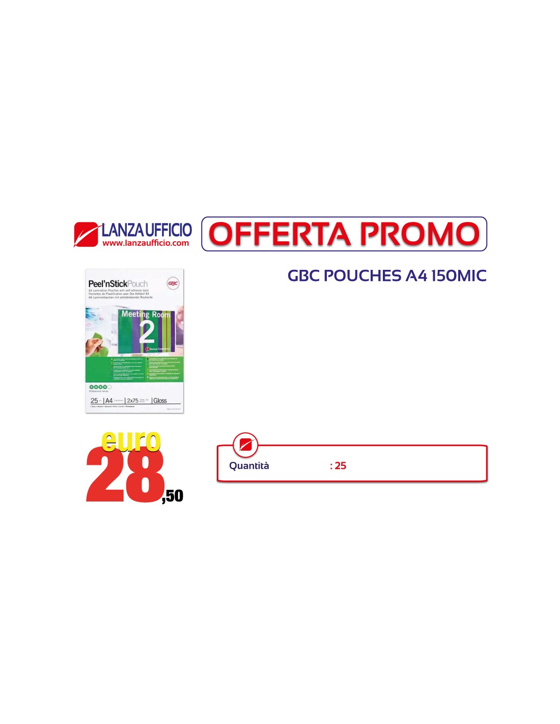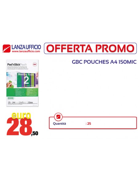 POUCHES GBC PEEL'N STICK POUCH A4 150 MICRON CONFEZIONE 25 PEZZI